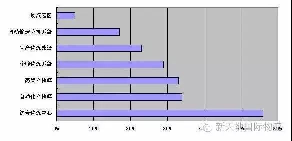 根据问卷分析,未来5年企业投资综合物流中心、自动化立体库和高架立体库项目的比例较高,其次是冷链物流项目、生产线物流系统改造和自动分拣系统,物流园区的投资比例最低。