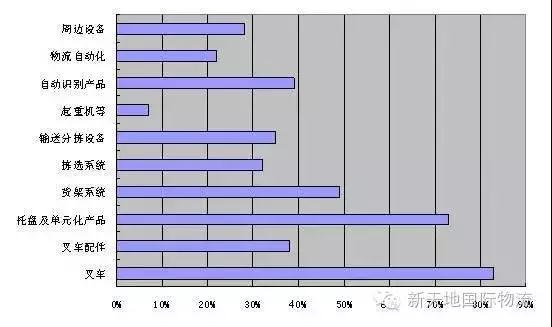 未来5年,大部分企业都需要采购叉车、托盘、货架、自动识别产品、自动化物流设备、物流周边设备等产品,回答采购需求的企业比例比较高。