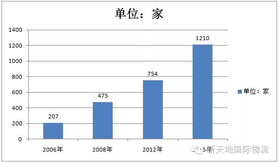 经核实,截至本次调查结束,全国包括运营、在建和规划的各类物流园区共计1210家,比2006年的207家增长484%;与2008年的475家相比,增长155%;与2012年的754家相比,增长60%。如下图所示: